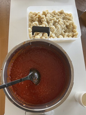 その後、ブラジルの家庭料理「ニョッキ」の作り方を丁寧に紹介していただき、参加者は興味津々。