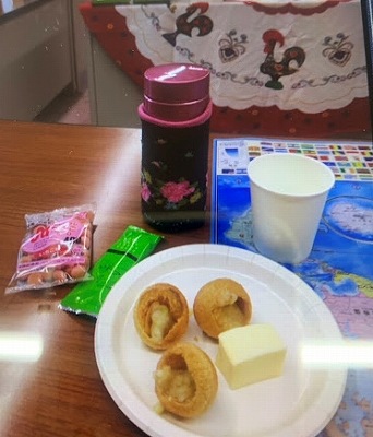 交流の合間には、手作りのおいしい差し入れが並びました。