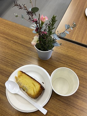 お楽しみのティータイムでは、アリセさん手作りのケーキが振る舞われ、皆さん笑顔で味わっていました。